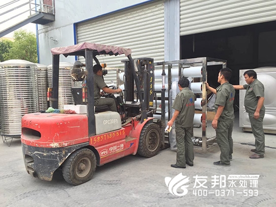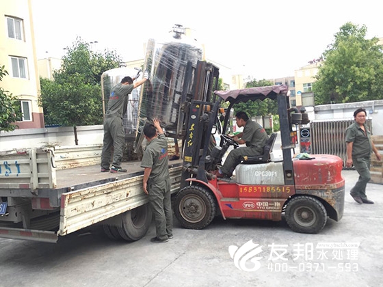 這套型號為YB-CJS-008的水處理設(shè)備正在裝車發(fā)貨,是發(fā)往新鄉(xiāng)某新材料有限公司。鄭州友邦在此次合作中為新鄉(xiāng)某新材料有限公司提供提供的8T/H純水系統(tǒng),完美的解決了對方在生產(chǎn)工藝用水方面的需求,成功幫助對方實現(xiàn)了新材料的生產(chǎn)。