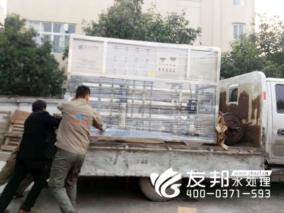鄭州友邦正在裝車是這套每小時出水2噸的純凈水設備,發(fā)往開封電器有限公司。