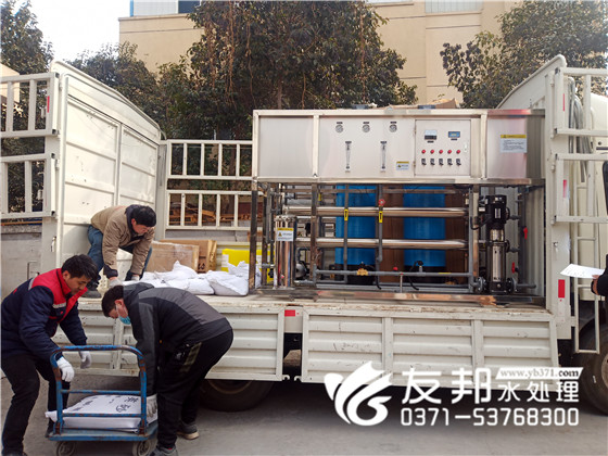陽光明媚,開啟了美好的一天。友邦工作人員辛勤勞作,即將裝車發貨的是一套15噸反滲透系統發往濮陽。反滲透設備簡單來說就是生產純凈水的設備。而純凈水又被我們廣泛用于:生活飲用、化工、醫療、養殖、種植、食品、飲料等。