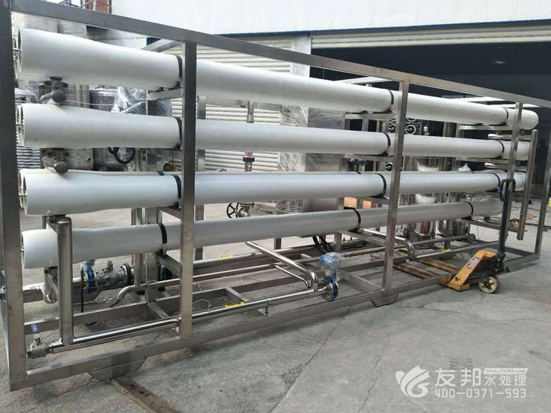 原水→增壓泵(一用一備)→砂過濾器→炭過濾器→硬化器(根據地區不合選用)→精密過濾器→兩頭水箱→RO前水泵→精密過濾器→RO高壓泵→RO反滲透零碎→RO水箱